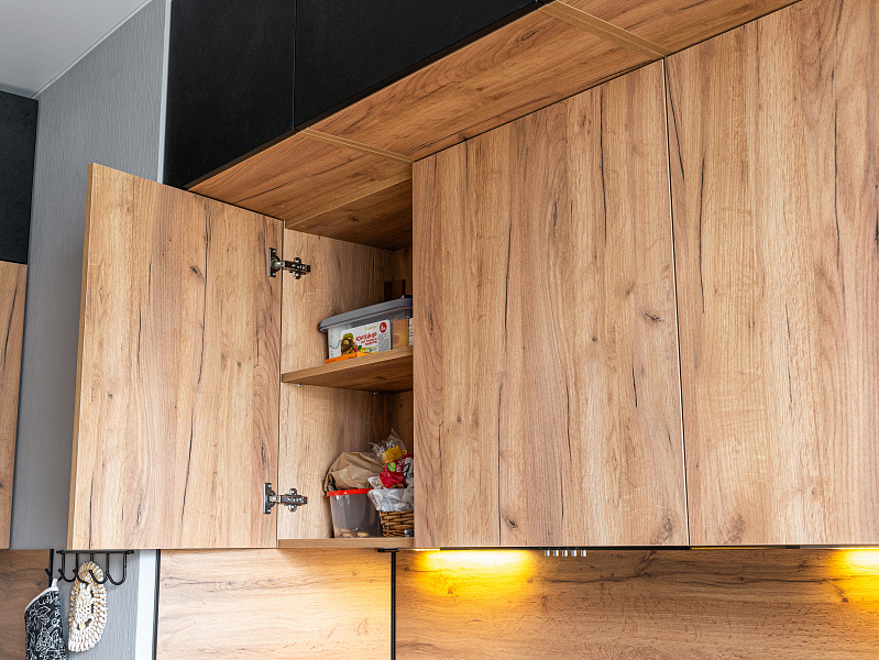 Зависит от размера, материала фасадов и комплектации. Прямые — от 120 000 ₽, угловые — от 180 000 ₽. Точную стоимость считаем бесплатно после замера или по вашим размерам.