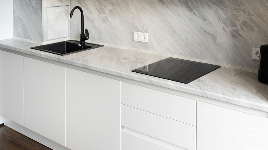 Кухня прямая Hi-Tech — Фортуна белый: детали и особенности